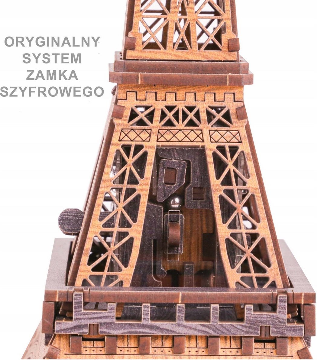 3D Puzzle ze série Escape - seznamte se s dřevěným 3D modelem, který vás přenese do srdce Paříže! Tato neobvyklá sada kombinuje eleganci slavné Eiffelovy věže s fascinující mechanikou hlavolamu. Dárek, který překračuje hranice všednosti. Pro milovníka historie, nadšence do hlavolamů nebo někoho, kdo ocení jemné umělecké zpracování. Na této cestě není spojencem síla, klíčem je jemnost. Každá část se bez námahy sladí a zajistí hladké sestavení. Řešení jsou skrytá a čekají na objevení logickým uvažováním.