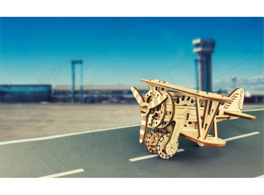 Divoká modrá obloha volá! Dřevěná mechanická stavebnice modelu Dvouplošníku má jedinečný design a překvapivé detaily. Vydejte se na vlastní dobrodružství Indiana Jonese - s vlastním dvouplošníkem od WOODEN CITY si snadno představíte, jak letíte vzduchem a prcháte před pronásledovateli s otcovým deníkem, stejně jako ve filmu Indiana Jones a poslední křížová výprava. Jste-li romantik, pak poletíte ve stopách francouzského spisovatele a průkopníka letectví Antoina de Saint-Exupéryho, autora Malého prince. Na bývalém mezipřistání Aéropostale na letišti jihozápadně od marockého města Tarfaya se nachází vedle sebe malé muzeum se speciálním památníkem dvouplošníku, obojí věnované Saint-Exupérymu. Model letadla má vrtuli poháněnou gumovými pásy ("rezinomotor") s nastavitelnou akcelerací. Její lopatky se roztočí a letadlo na rovném povrchu rychle zrychlí. Užijte si to! Ovládání tohoto speciálního letadla je ve vašich rukou. 3D puzzle WOODEN CITY Biplane - Dvouplošník bude nejlepším dárkem pro každého milovníka letadel. Obtížnost: 3 z 5 (dle rozdělení Wooden City) Orientační doba na složení: 2 hodiny Měřítko: 1:50 Dřevěné 3D puzzle WOODEN CITY jsou detailně propracované funkční mechanické modely, které se skládají bez lepidla nebo nářadí. Jsou vyrobeny z ekologických dřevěných materiálů - kvalitní březové překližky. S mechanickými dřevěnými puzzle WOODEN CITY zažijete hodiny zábavy při skládání a poznáte převody, gumičkové motory, ozubená kolečka a další součástky z bezprostřední blízkosti. funkční mechanický model skládání bez použití lepidla nebo nářadí kvalitní zpracování z přírodního materiálu propracované detaily UPOZORNĚNÍ: K sestavení je třeba ulamovací nůž, nůžky, brusný papír a svíčku z vosku (není součástí výrobku). Pro správné fungování a bezproblémový provoz je potřeba nápravy a ozubená kolečka navoskovat. Rozměr složeného puzzle cca 16,1 x 14 x 8,8 cmVlastnosti