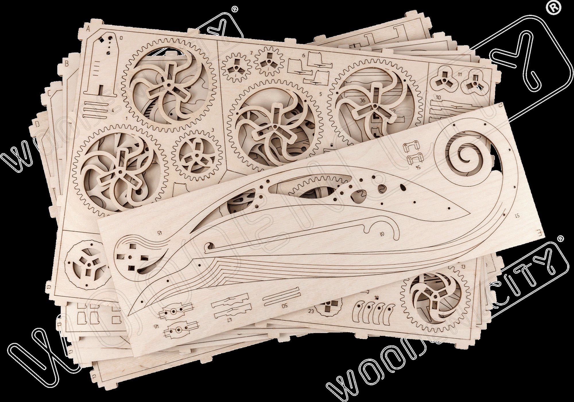 Tento model vyřezávaného kyvadla je neuvěřitelně krásné a má precizně navržený otevřený mechanismus. Sestavte si tento nádherný předmět, který můžete mít doma jako dekoraci a také jej využijete při meditaci. Rytmus života může být intenzivní, s každodenním stresem a nahromaděnou únavou... Mnoho psychologů doporučuje meditaci jako způsob, jak se uvolnit, soustředit a prostě si odpočinout jak psychicky, tak fyzicky. Pořiďte si tento model a najdete klid, krásu a radost! - Spouští se tahem hnacího závaží dolů, - rovnoměrné kývání v ustáleném rytmu, - pro změnu rytmu kyvadla připevněte na závaží nebo podél vnitřní strany kyvadla mince, - počet mincí ovlivňuje periodu kmitání, - zajímavé a poučné, - učí principy mechanického pohybu, fyzikální zákony a význam estetiky, - provozní doba od jednoho spuštění je přibližně 120 minut. 3D puzzle WOODEN CITY Pendulum neobvyklým dárkem pro náročné milovníky krásy a pohody. Obtížnost: 3 z 5 (dle rozdělení Wooden City) Orientační doba na složení: 5 hodin Dřevěné 3D puzzle WOODEN CITY jsou detailně propracované funkční mechanické modely, které se skládají bez lepidla nebo nářadí. Jsou vyrobeny z ekologických dřevěných materiálů - kvalitní březové překližky. S mechanickými dřevěnými puzzle WOODEN CITY zažijete hodiny zábavy při skládání a poznáte převody, gumičkové motory, ozubená kolečka a další součástky z bezprostřední blízkosti. funkční mechanický model skládání bez použití lepidla nebo nářadí kvalitní zpracování z přírodního materiálu propracované detaily obrázkový návod UPOZORNĚNÍ: K sestavení je třeba ulamovací nůž, nůžky, brusný papír a svíčku z vosku (není součástí výrobku). Pro správné fungování a bezproblémový provoz je potřeba nápravy a ozubená kolečka navoskovat. Rozměr složeného puzzle cca 58,6 x 25,1 x 7,4 cmVlastnosti