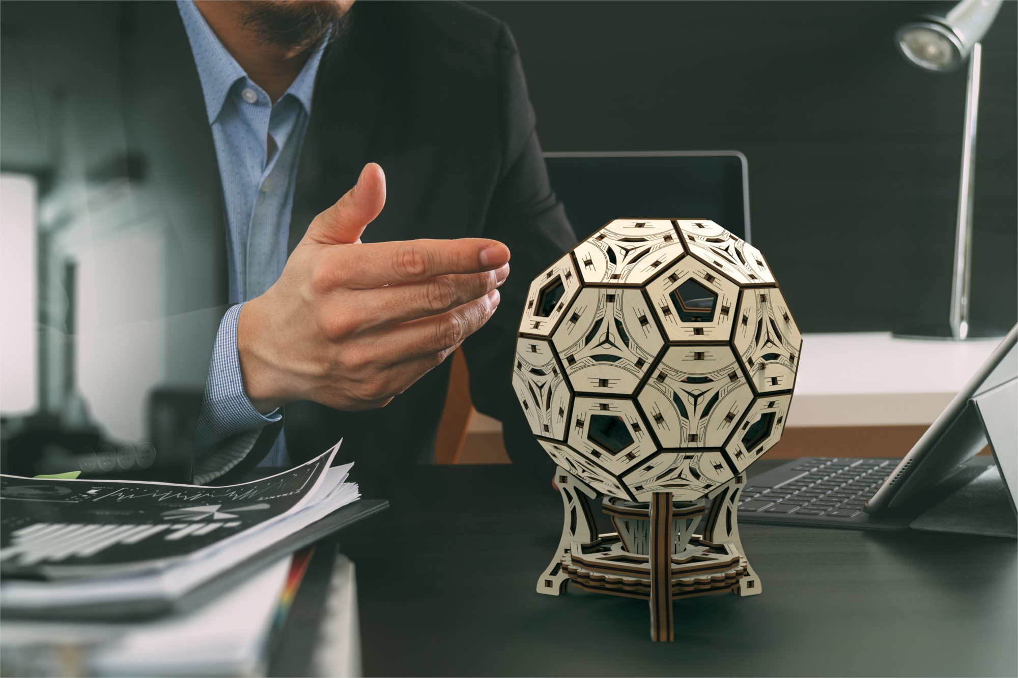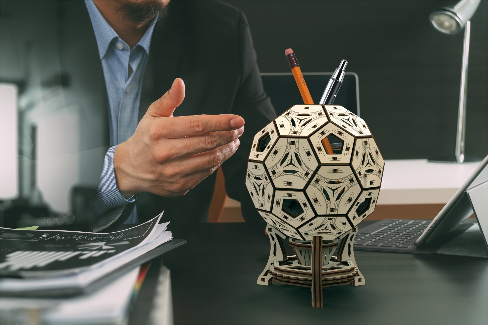 WOODEN CITY 3D puzzle Multifunkční organizér - Fotbalový míč 175 dílů