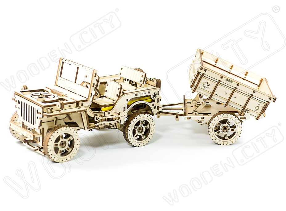 Vlastnosti přívěsu: - hák pro připojení, - stejně velká kola 4x4 jako na džípu, - zvedací nástavba (typ sklápěče), - sklopné zadní dveře, - odnímatelný kanystr , - spouštěcí páku, - vhodné pro přepravu ulovené zvěře nebo zajatců. 3D puzzle WOODEN CITY Trailer je skvělým a nezbytným doplňkem vaší 3D sbírky dřevěných modelů. Obtížnost: 3 z 5 (dle rozdělení Wooden City) Orientační doba na složení: 3 hodiny Měřítko: 1:12 Dřevěné 3D puzzle WOODEN CITY jsou detailně propracované funkční mechanické modely, které se skládají bez lepidla nebo nářadí. Jsou vyrobeny z ekologických dřevěných materiálů - kvalitní březové překližky. S mechanickými dřevěnými puzzle WOODEN CITY zažijete hodiny zábavy při skládání a poznáte převody, gumičkové motory, ozubená kolečka a další součástky z bezprostřední blízkosti. funkční mechanický model skládání bez použití lepidla nebo nářadí kvalitní zpracování z přírodního materiálu propracované detaily obrázkový návod UPOZORNĚNÍ: K sestavení je třeba ulamovací nůž, nůžky, brusný papír a svíčku z vosku (není součástí výrobku). Pro správné fungování a bezproblémový provoz je potřeba nápravy a ozubená kolečka navoskovat. Rozměr složeného puzzle cca 24,5 x 14,4 x 11,2 cmVlastnosti