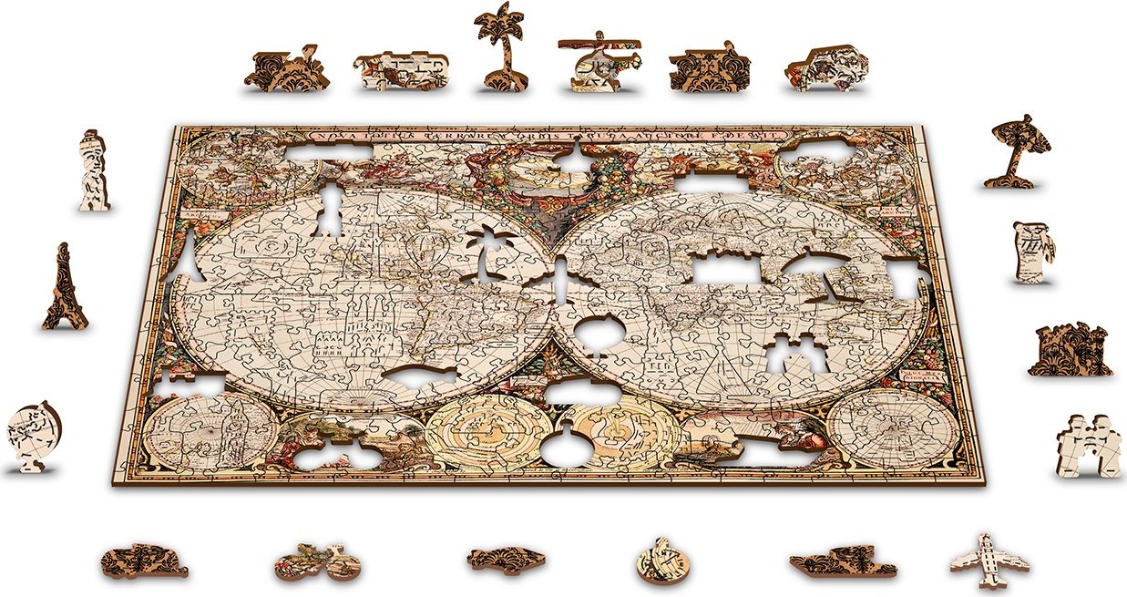 WOODEN CITY Dřevěné puzzle Antická mapa světa 2v1, 75 dílků EKO