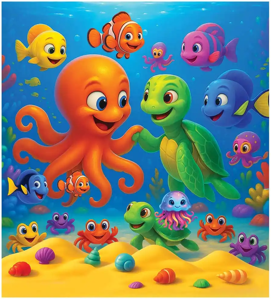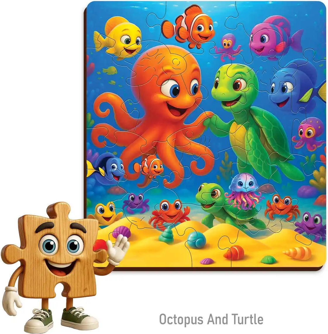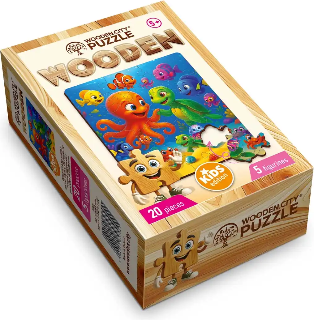 WOODEN CITY Dřevěné puzzle Chobotnice a želva 20 dílků