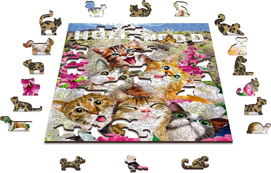 WOODEN CITY Dřevěné puzzle Koťata v Hollywoodu 2v1, 75 dílků EKO