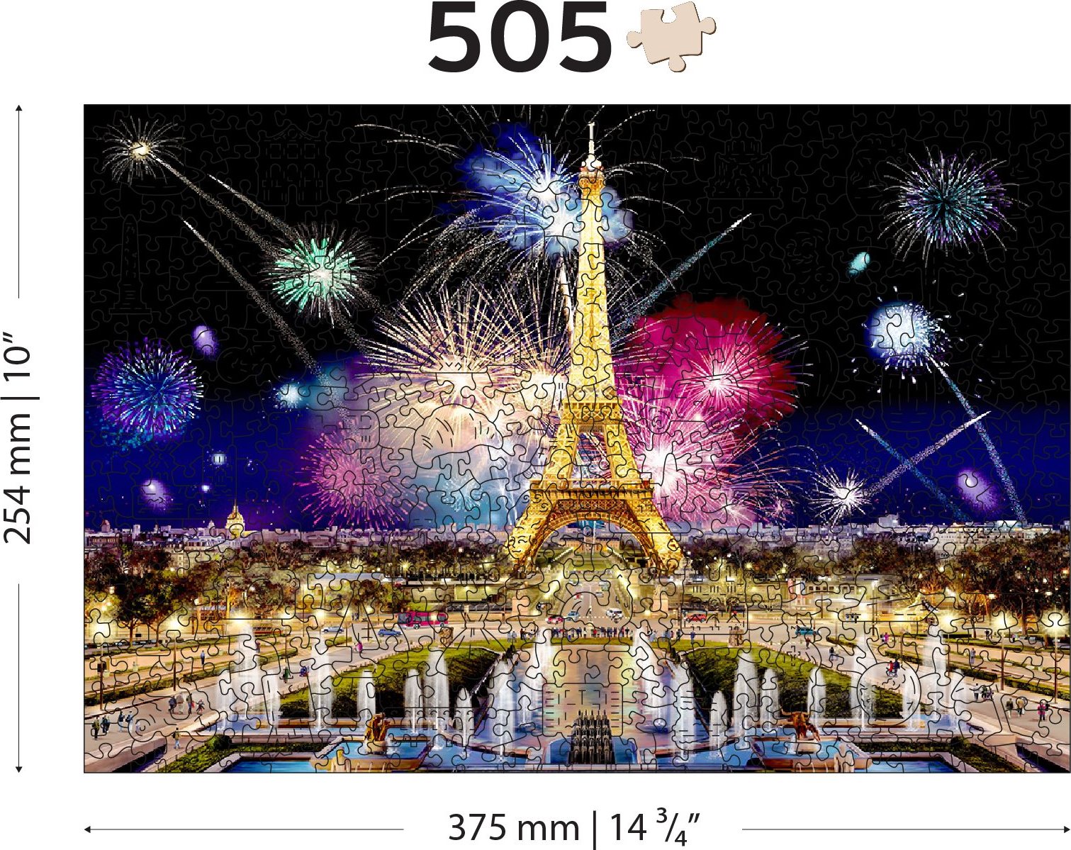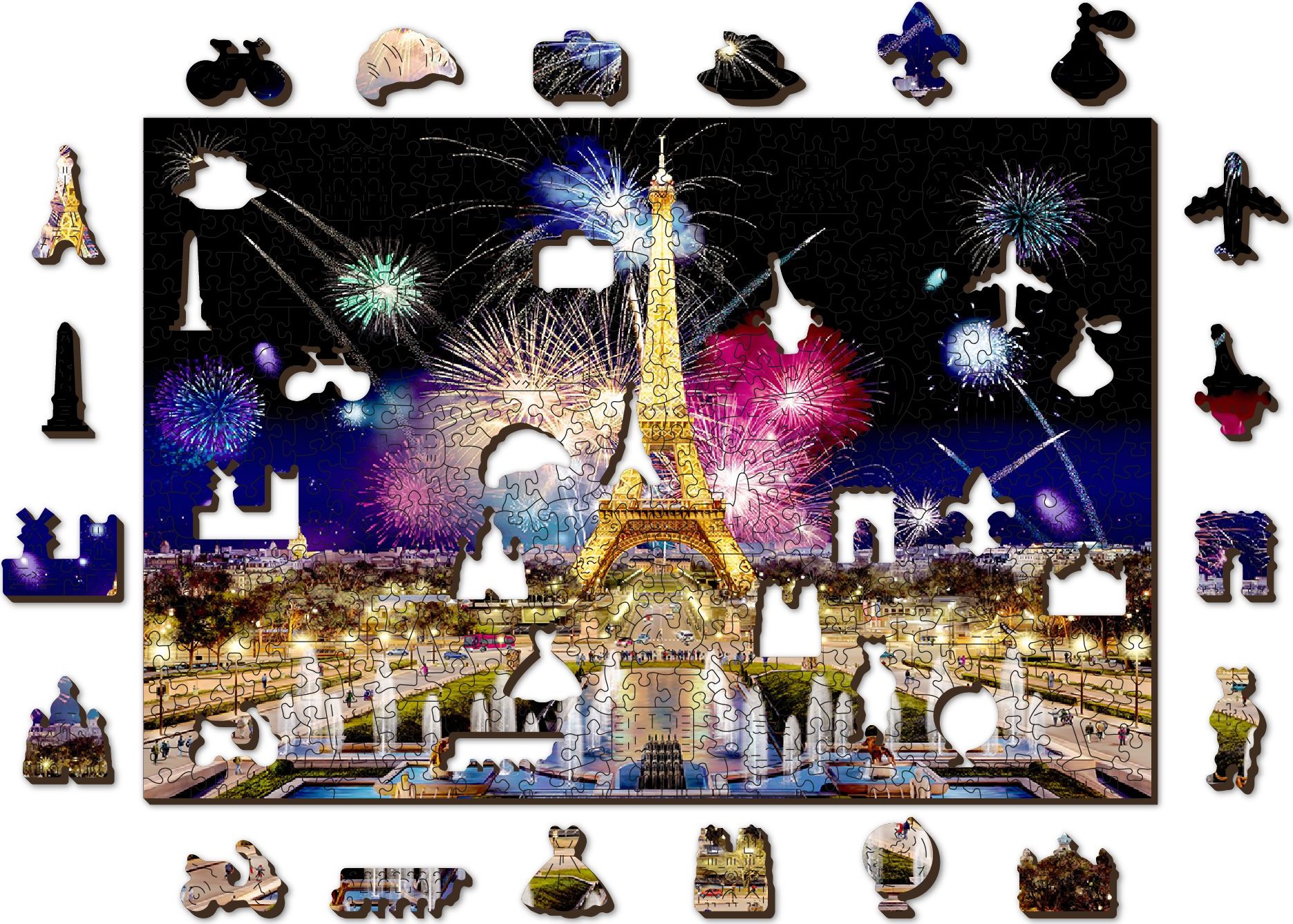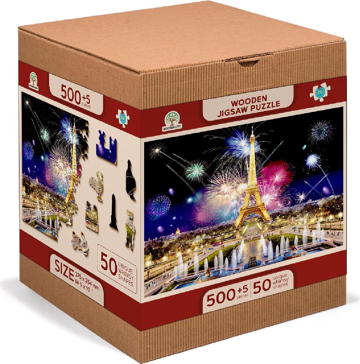 Laserem vyřezávané dřevěné puzzle WOODEN CITY se svými speciálně tvarovanými dílky je neskutečně zábavné. Část dílků je vyrobena ve tvaru zvířat, staveb nebo předmětů , jejichž výsledný efekt umocňují laserem zvýrazněné detaily. Tyto dílky mohou samostatně stát jako drobné figurky. Skládání puzzle s různotvarými dílky je obtížnější a představuje větší výzvu, než skládání klasického puzzle. Puzzle je navíc oboustranné , skládat můžete jak podle obrázku (lícová strana), tak podle tvaru (rubová strana se vzorem). Značka WOODEN CITY kromě unikátního konceptu puzzle nezapomíná na ekologii, u těchto výrobku proto nenaleznete žádné plastové obaly . s unikátně tvarovanými dílky představující známé stavby, předměty nebo zvířata podle tématu motivu vyšší obtížnost při menším počtu dílků - skládání puzzle s různotvarými dílky je náročnější oboustranné puzzle 2v1 - z jedné strany je obrázek, z druhé opakující se vzor pro skládání podle tvaru hladké hrany bez třísek díky preciznímu laserovému zpracování vyrobeno z pevné dřevovláknité HDF desky o síle 3-4mm uvnitř balení je samostatná předloha na skládání EKO Friendly 100% bez plastových obalů - puzzle je v papírovém sáčku uvnitř papírové krabičky vhodný dárek pro jakoukoliv příležitost Velikost: L Počet dílků celkem: 505 Unikátně tvarované dílky: 50 Rozměr složeného puzzle cca 37,5 x 25,4 cmVlastnosti