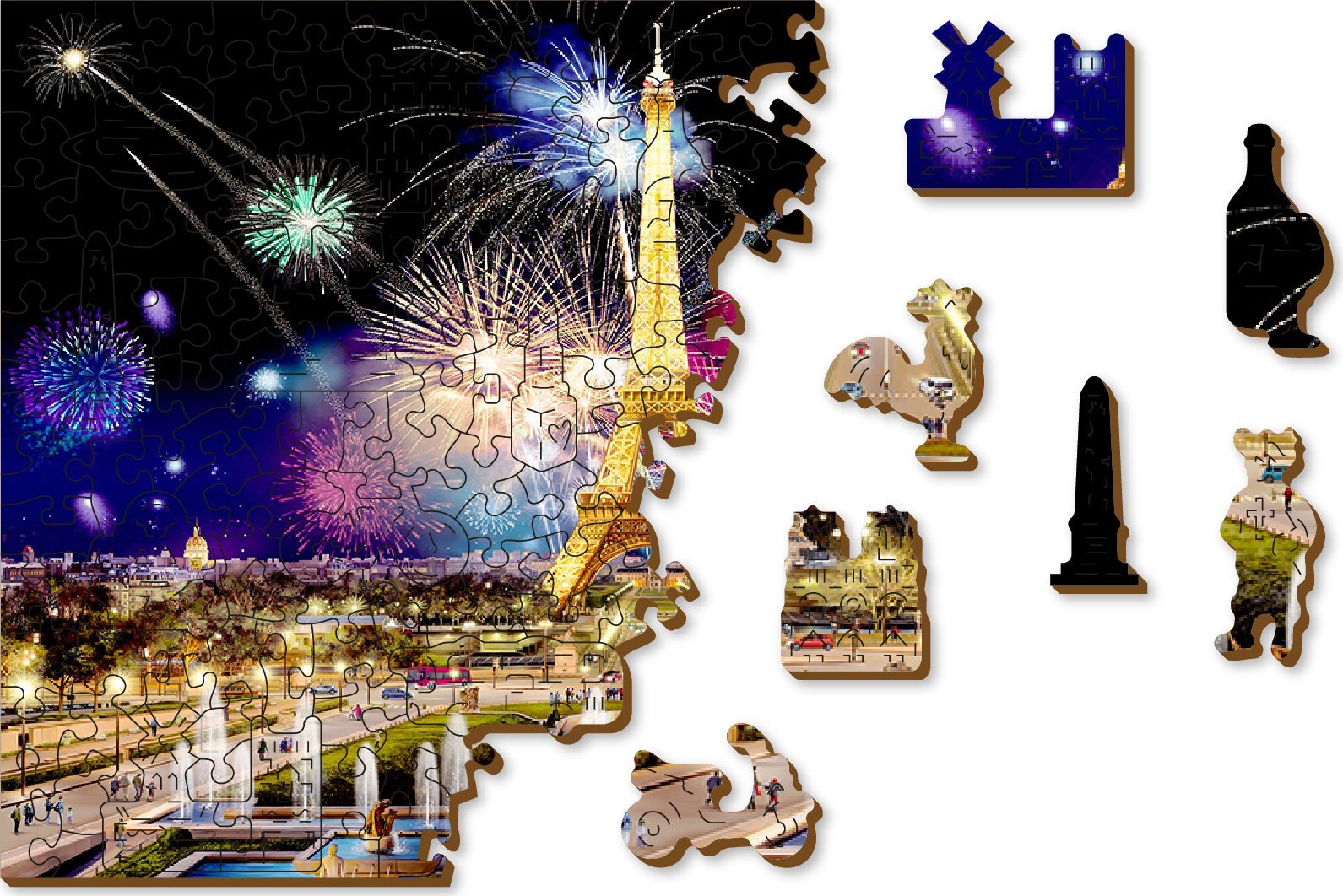 WOODEN CITY Dřevěné puzzle Noční Paříž 2v1, 505 dílků EKO