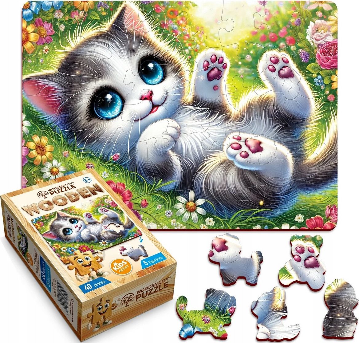 WOODEN CITY Dřevěné puzzle Roztomilé koťátko 40 dílků