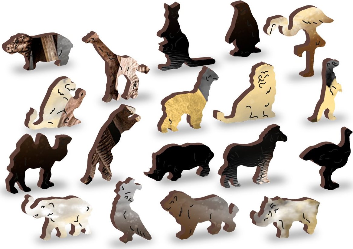 Upozornění: Fotografie puzzle s dílky jsou ilustrativní, mohou zobrazovat variantu s odlišným počtem dílků. Celkový počet dílků je vždy uveden v názvu výrobku, výsledný rozměr obrázku a počet unikátně tvarovaných dílků je uveden v popisu. Laserem vyřezávané dřevěné puzzle WOODEN CITY se svými speciálně tvarovanými dílky je neskutečně zábavné. Část dílků je vyrobena ve tvaru zvířat, staveb nebo předmětů , jejichž výsledný efekt umocňují laserem zvýrazněné detaily. Tyto dílky mohou samostatně stát jako drobné figurky. Skládání puzzle s různotvarými dílky je obtížnější a představuje větší výzvu, než skládání klasického puzzle. Puzzle je navíc oboustranné , skládat můžete jak podle obrázku (lícová strana), tak podle tvaru (rubová strana se vzorem). Značka WOODEN CITY kromě unikátního konceptu puzzle nezapomíná na ekologii, u těchto výrobku proto nenaleznete žádné plastové obaly . s unikátně tvarovanými dílky představující známé stavby, předměty nebo zvířata podle tématu motivu vyšší obtížnost při menším počtu dílků - skládání puzzle s různotvarými dílky je náročnější oboustranné puzzle 2v1 - z jedné strany je obrázek, z druhé opakující se vzor pro skládání podle tvaru hladké hrany bez třísek díky preciznímu laserovému zpracování vyrobeno z pevné dřevovláknité HDF desky o síle 3-4mm uvnitř balení je samostatná předloha na skládání EKO Friendly 100% bez plastových obalů - puzzle je v papírovém sáčku uvnitř papírové krabičky vhodný dárek pro jakoukoliv příležitost Velikost: S Počet dílků celkem: 75 Unikátně tvarované dílky: 15 Orientační doba na složení: 30-45 minut Rozměr složeného puzzle cca 18,2 x 12,15 cmVlastnosti