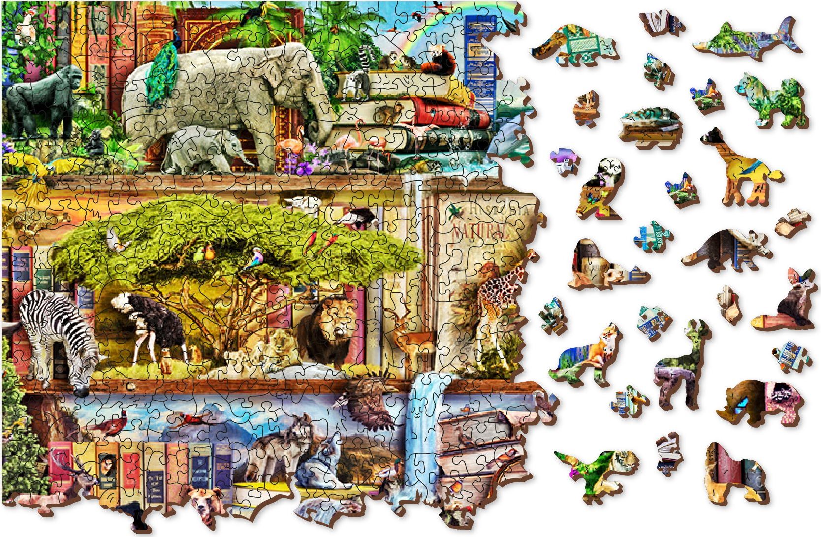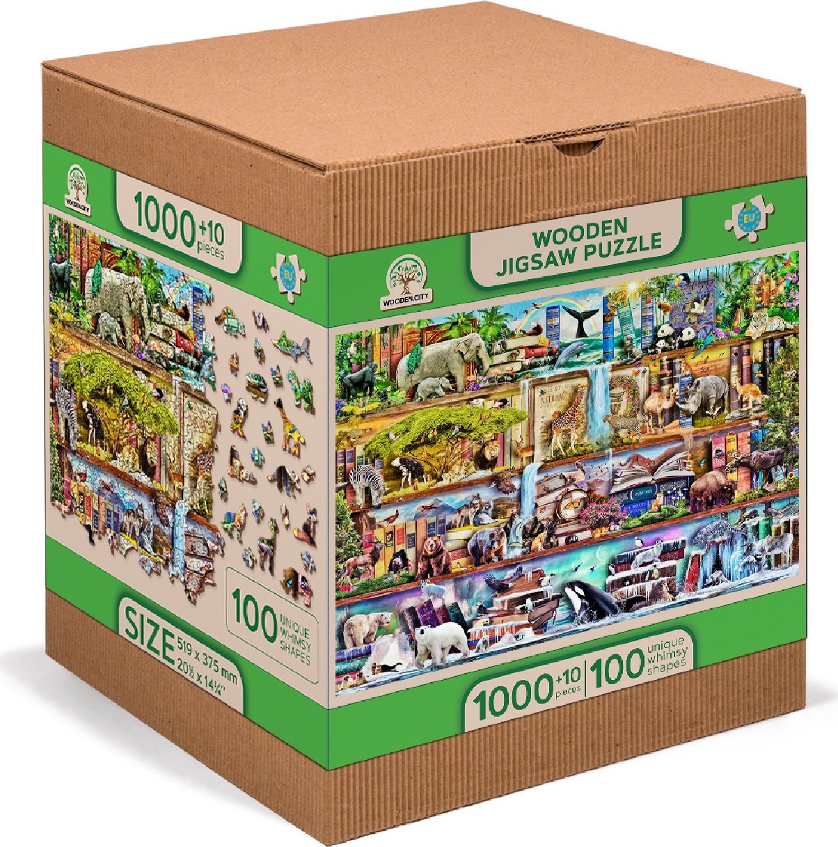 WOODEN CITY Dřevěné puzzle Úžasné království zvířat 2v1, 1010 dílků EKO
