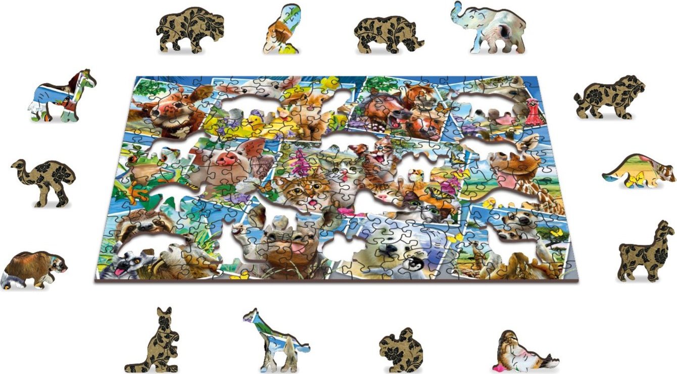 WOODEN CITY Dřevěné puzzle Zvířecí pohlednice 2v1, 505 dílků EKO