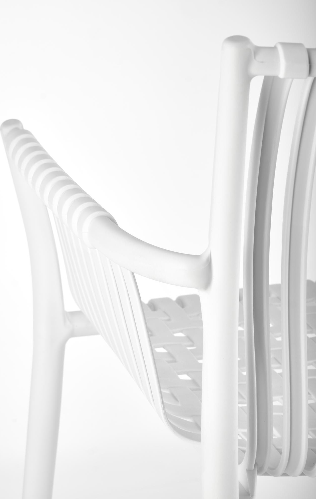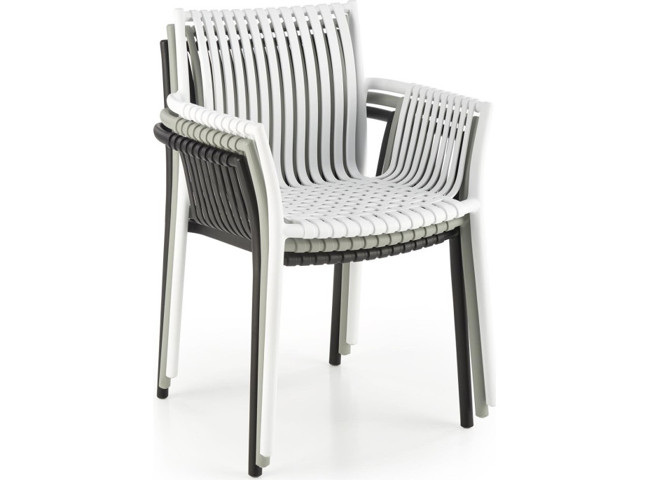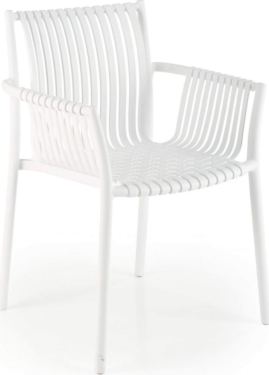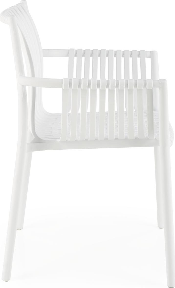Atraktivní balkonová židle s područkami se vyznačuje svým jednoduchým designem. Židle je celá vyrobena z polypropylenu - pevného plastu odolného vůči povětrnostním vlivům. Židle je vhodná pro vnitřní i venkovní použití - na terasu, balkon nebo zahradu. Velmi snadno se udržuje v čistotě.