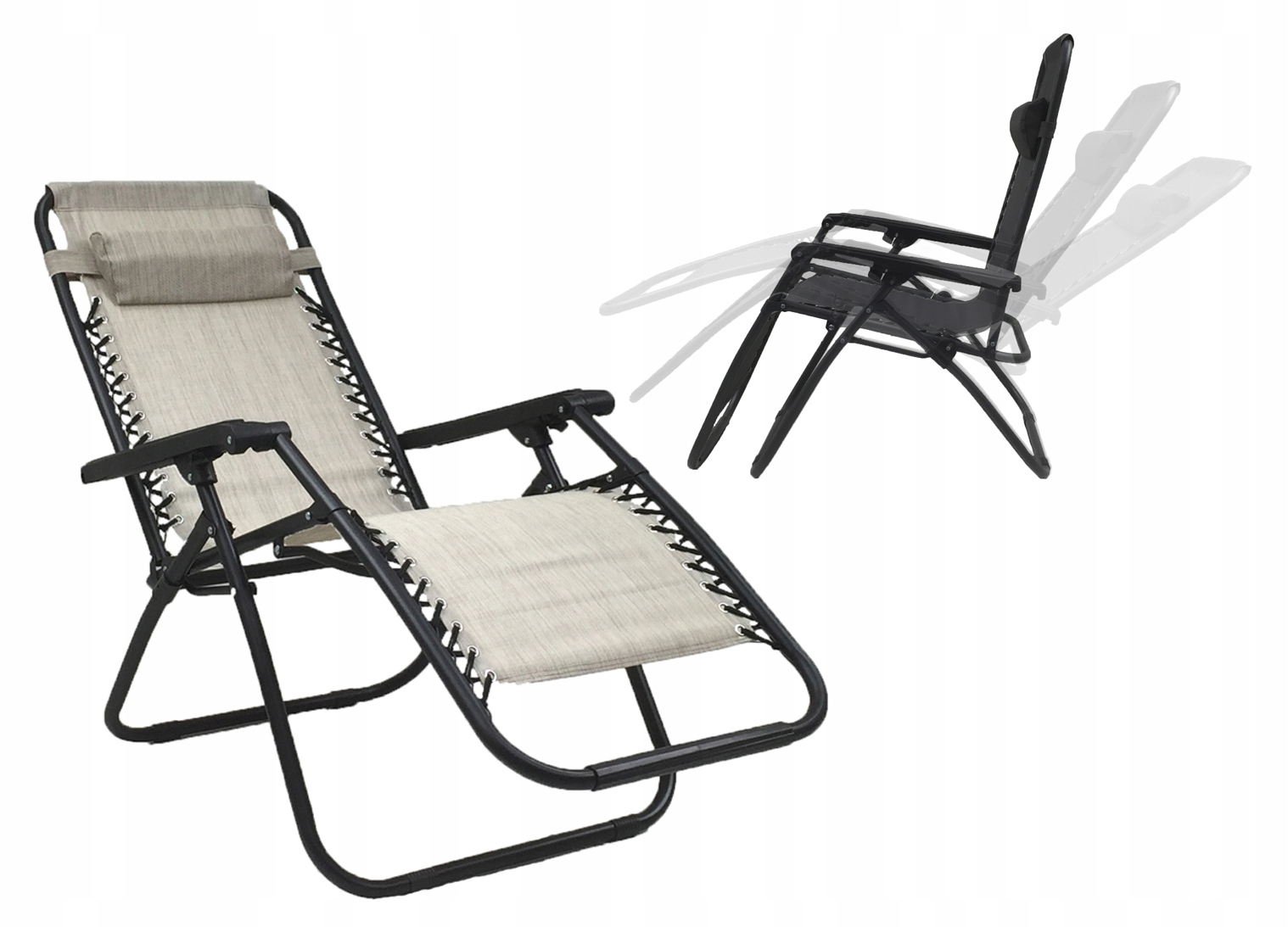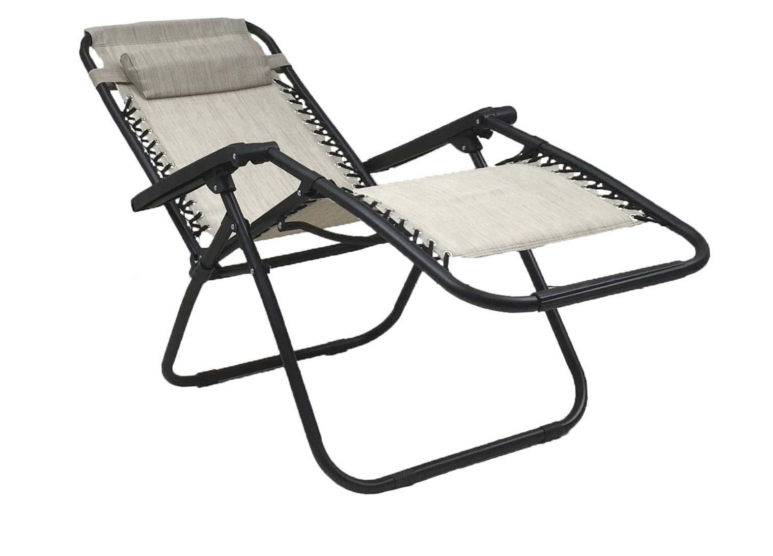 Zahradní rozkládací lehátko FARO béžové - držák nápojů - polštářek
