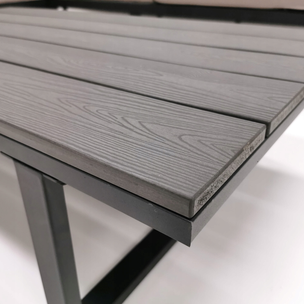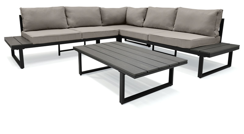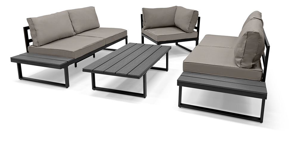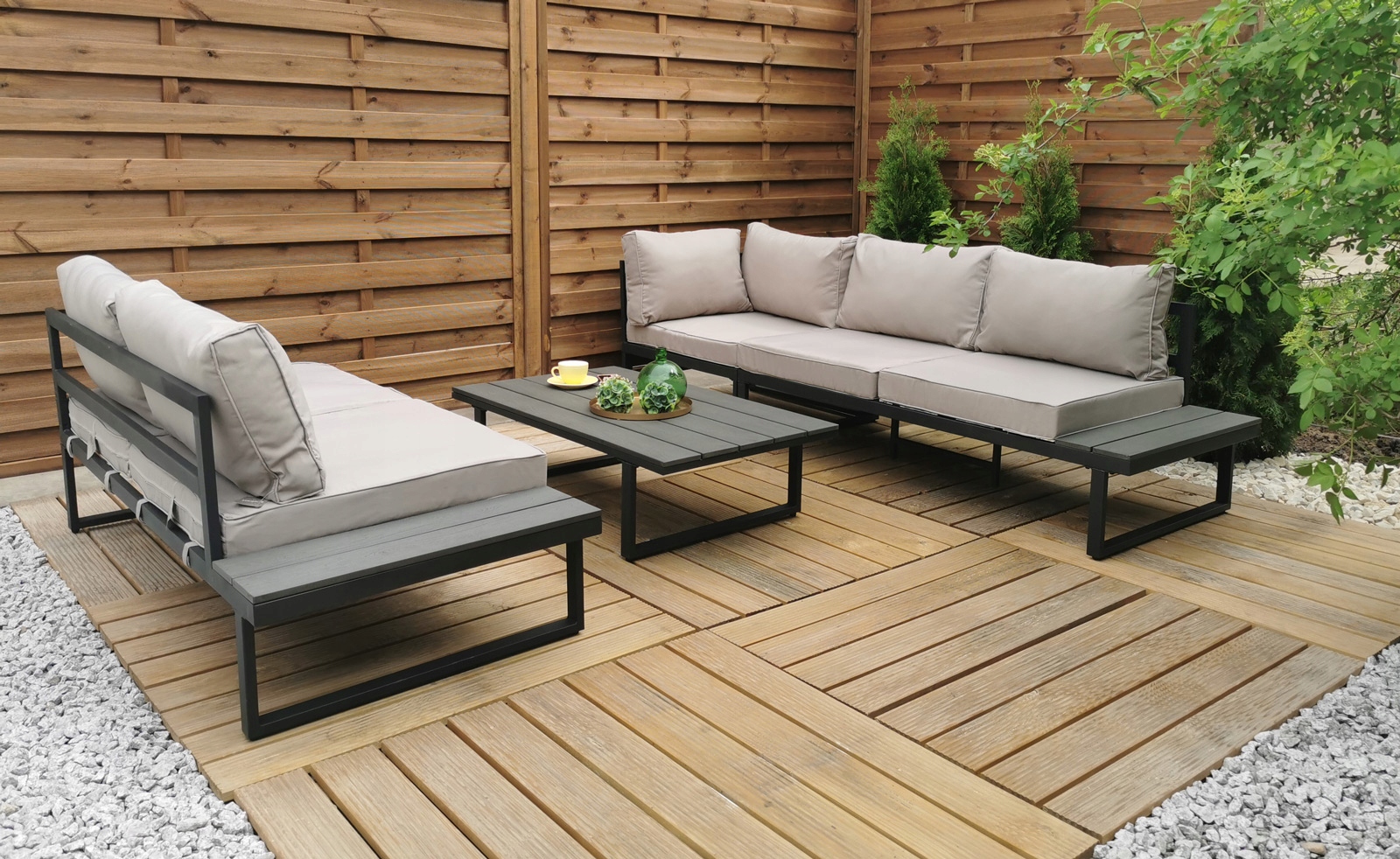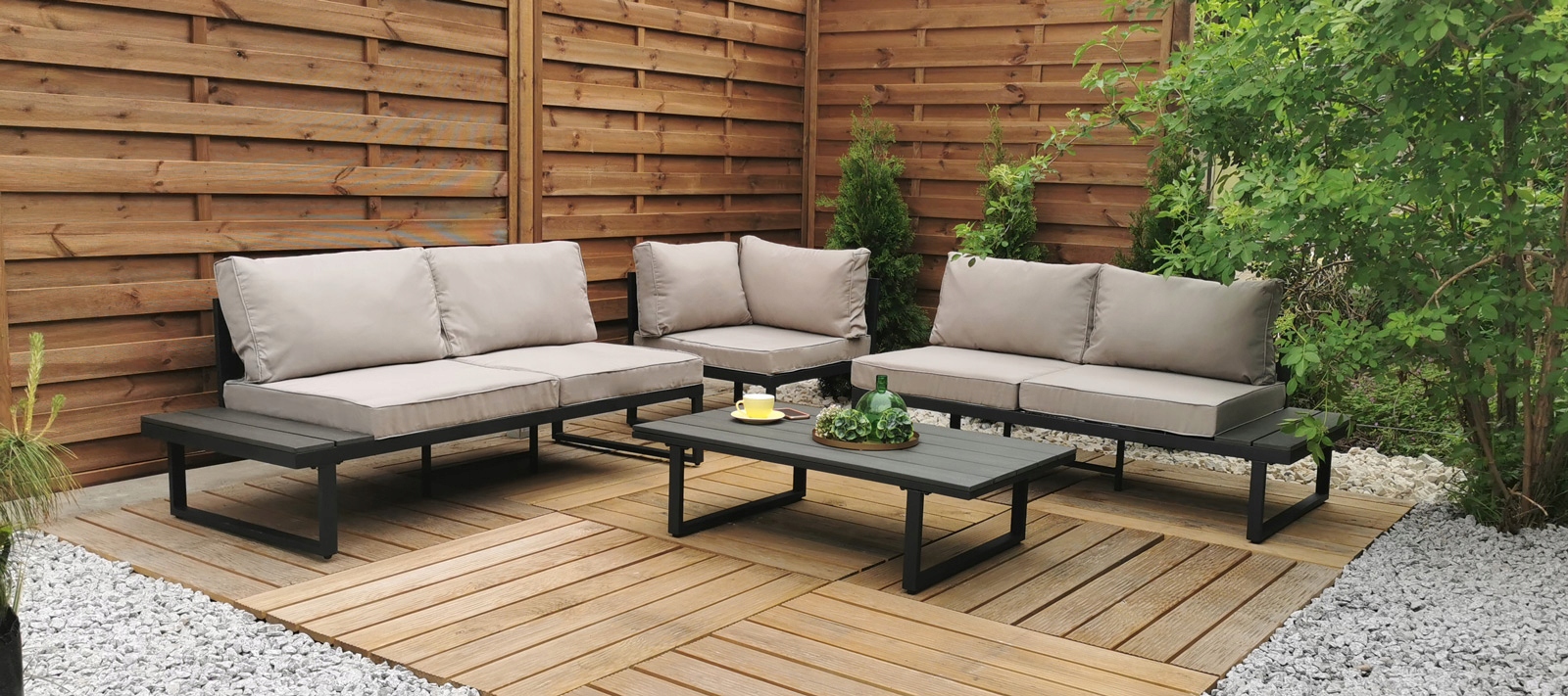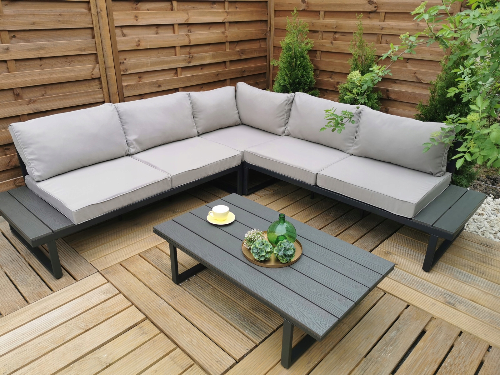 Zahradní sedací souprava řady Ventura je to pravé na každou zahradu, terasu či větší balkon. Tato kvalitní sada zahradního nábytku s pevnou a stabilní kovovou konstrukcí nabízí pohodlný prostor pro a 5 osob a dlouhou životnost. Kovová konstrukce je doplněna o plastové designové doplňky imitující dřevo.