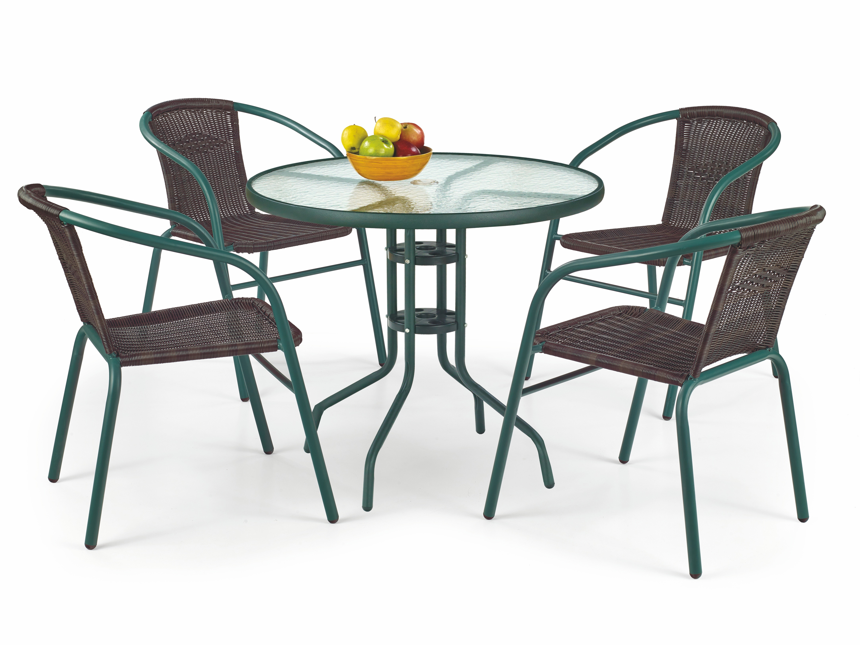 Zahradní ratanový nábytek GRIT 4 židle + stůl - tmavě zelený