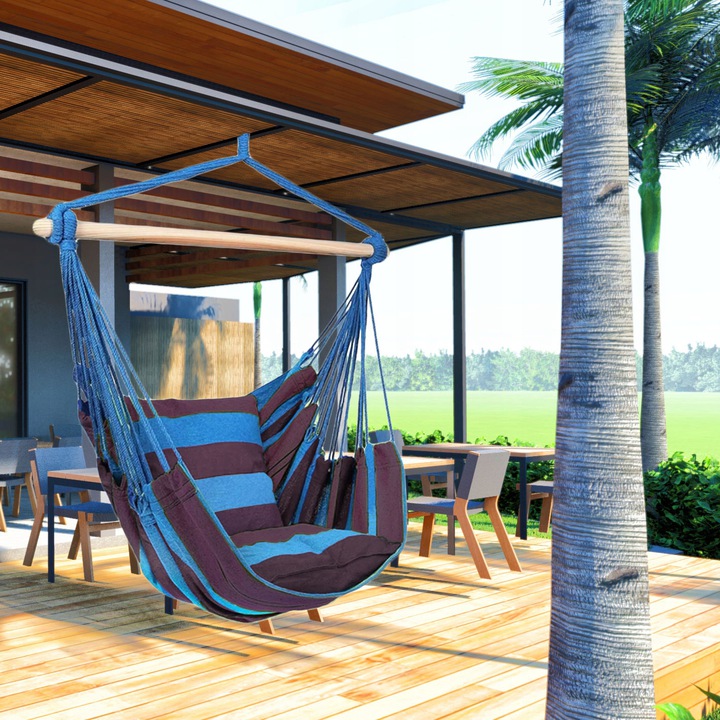 Odpočívejte, relaxujte nebo jen tak lenošte ve kvalitním houpacím křesle brazilského stylu. Ideální doplněk do každé zahrady či na terasu pro pohodové chvíle plné klidu. Vhodné k zavěšení do nosné konstrukce (není součástí balení) nebo například na strom. Hamak je velmi skladný a můžete si jej snadno vzít s sebou i na dovolenou.