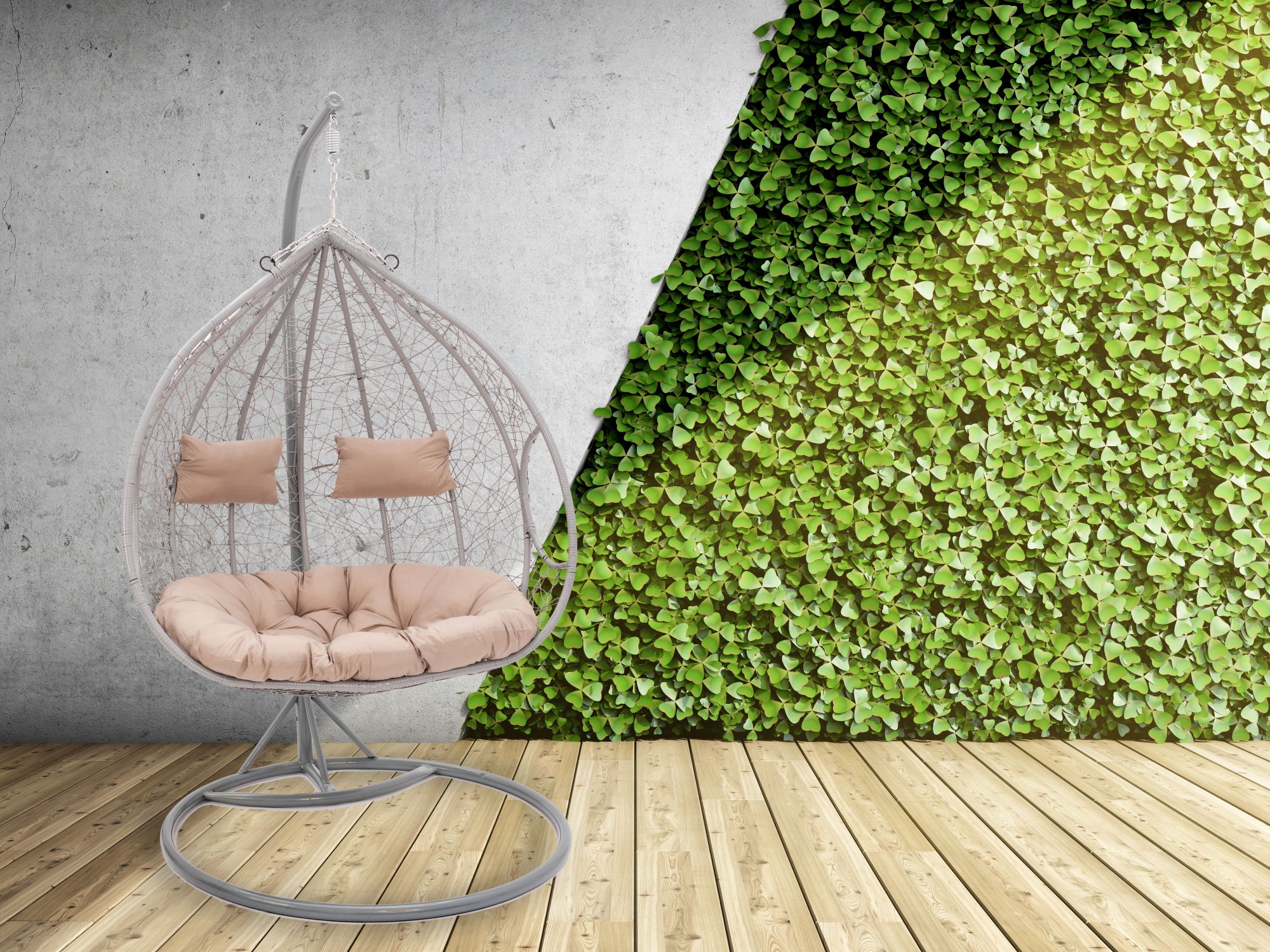 - sedací koš s ocelovým rámem vypletený umělým ratanem