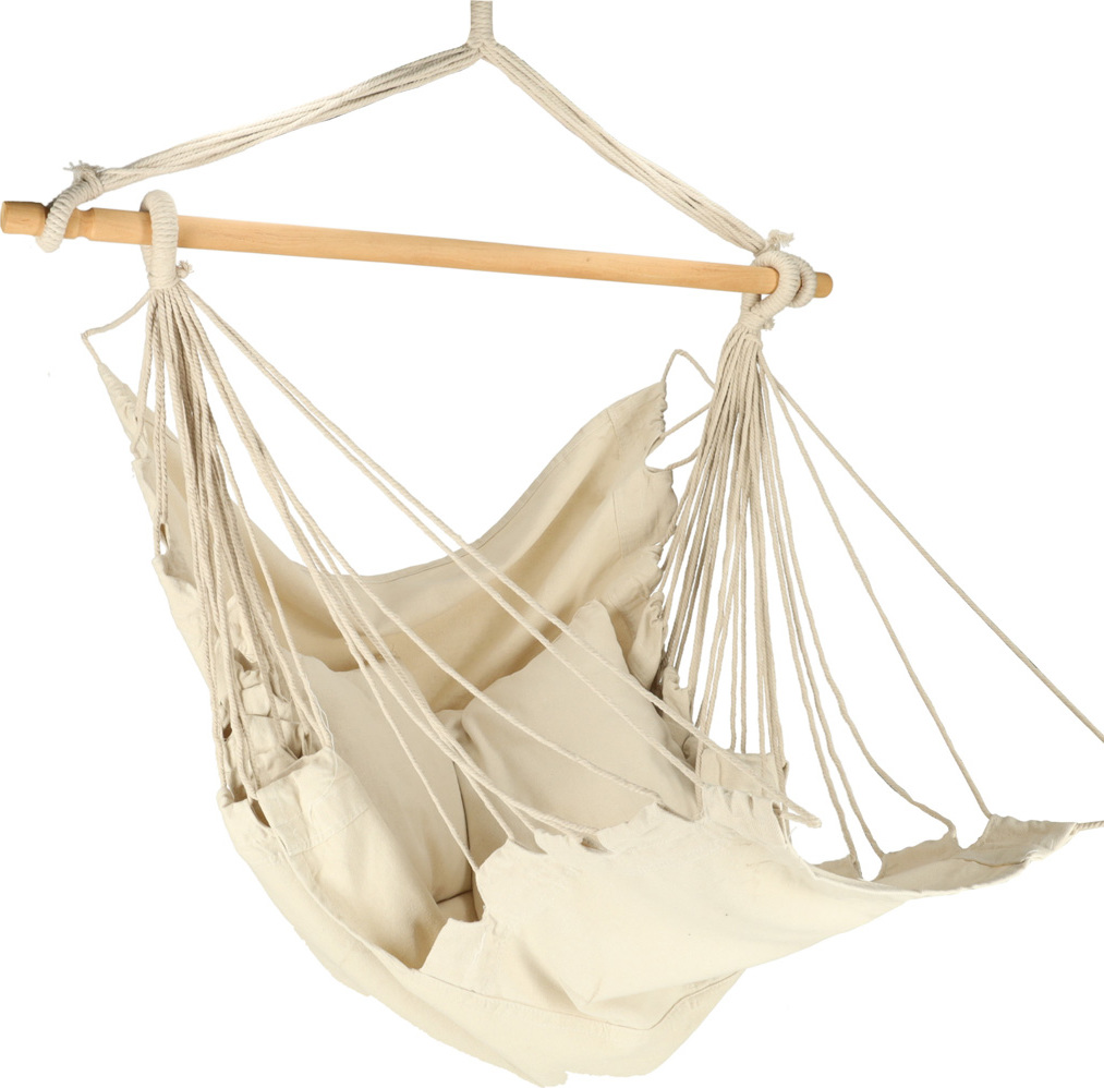 Závěsné houpací křeslo s podnožkou 130 cm - béžové