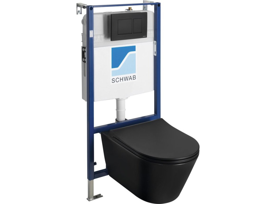 Závěsné WC AVVA Rimless s podomítkovou nádržkou a tlačítkem Schwab, černá mat 100314-110-SET5