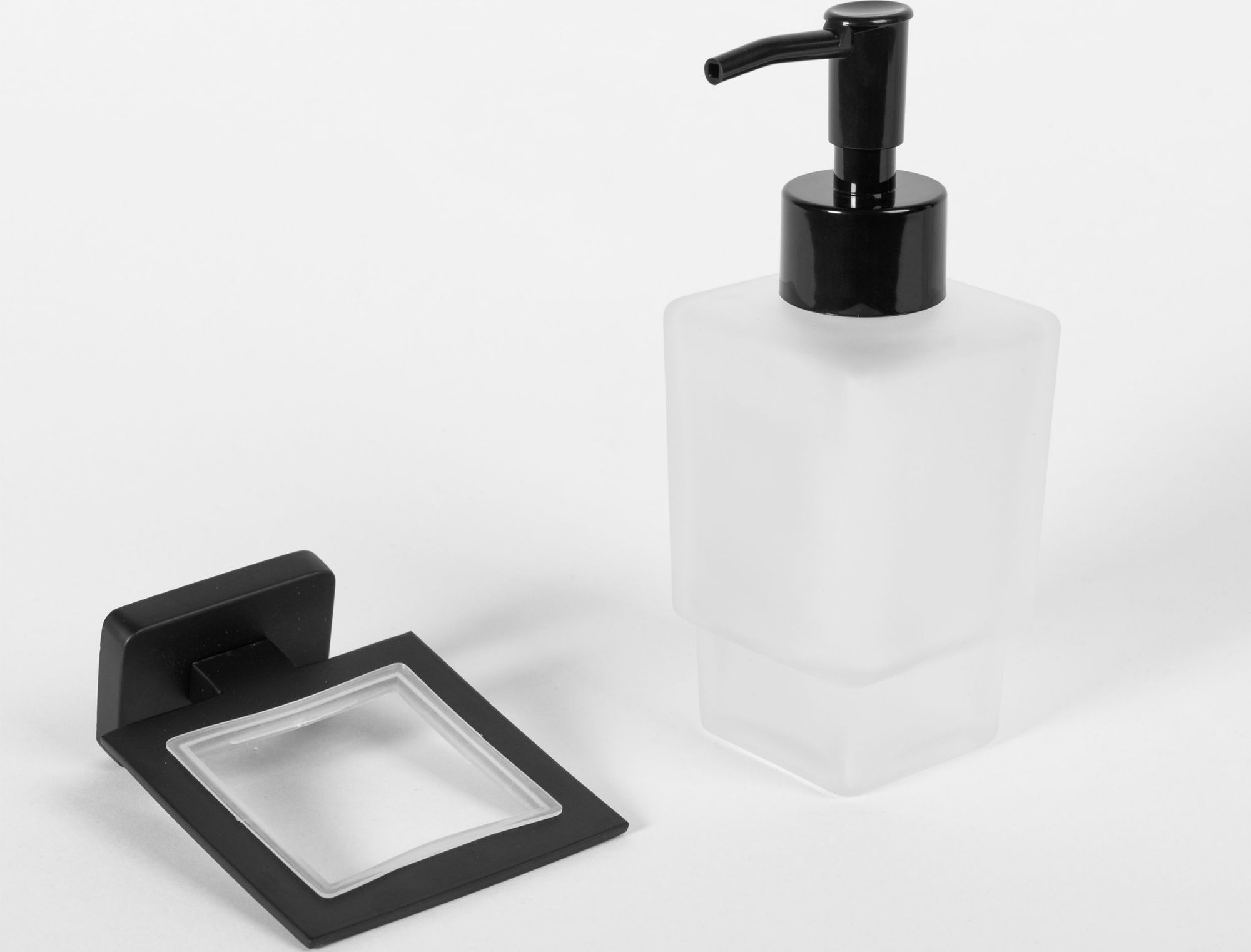 Závěsný dávkovač mýdla REA OSTE 06 s pumpičkou - kov/sklo - černý