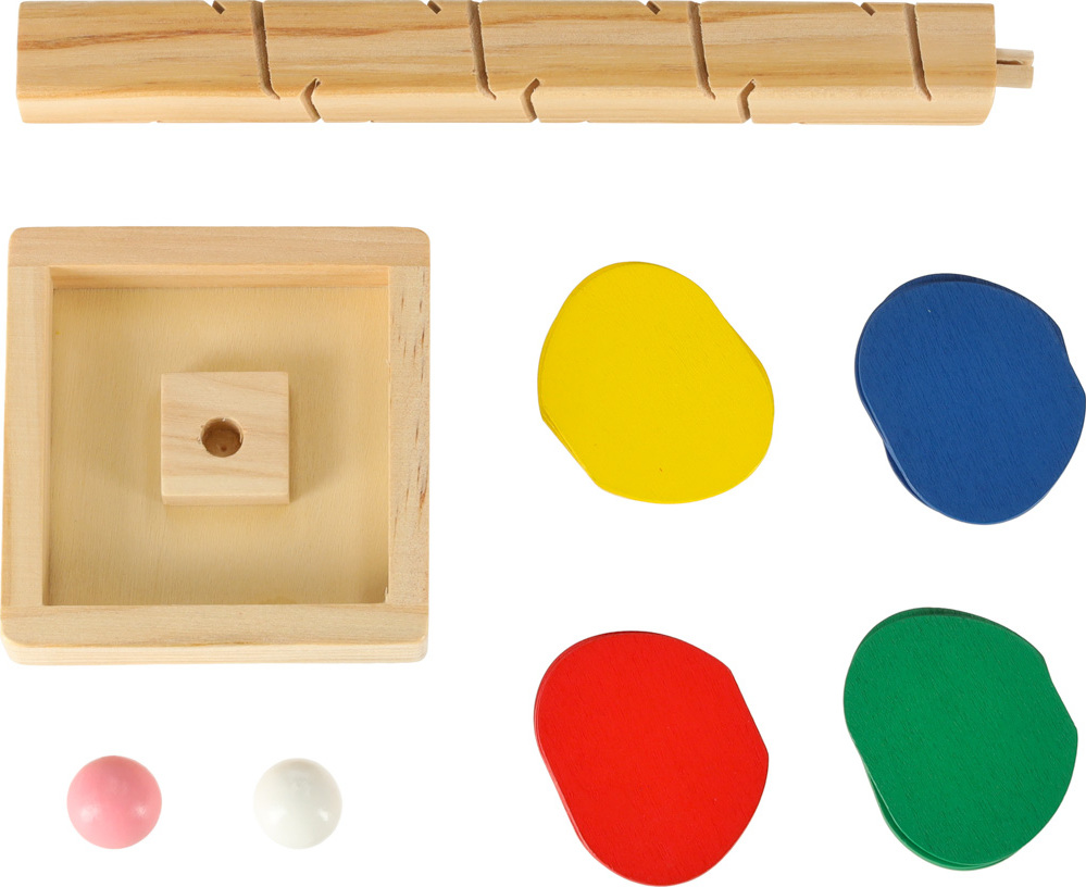 Robustní dřevěná konstrukce s barevnými akcenty nejen zajišťuje odolnost, ale slouží také jako esteticky příjemný dekorativní prvek v dětském pokoji. Strom rozvíjí jemnou motoriku, koordinaci rukou a očí a logické myšlení.