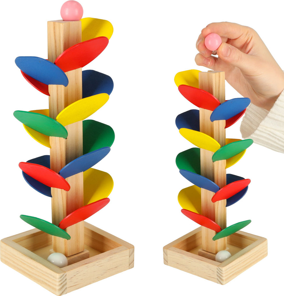 Zvukový strom je jednoduchá, ale poutavá hračka, která batolatům přináší radost a podporuje jejich rozvoj. Hra spočívá ve pouštění kuličky shora, která se kutálí dolů, odráží se od barevných listů a zároveň vydává jemné zvuky.